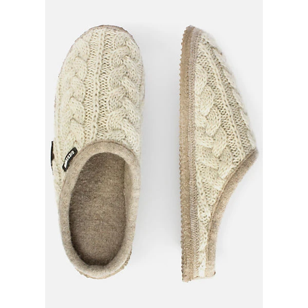 Warmer Winterpantoffel mit Zopf-Strickmuster – erhältlich in verschiedenen Farben. Modell „Neudau“ ist geeignet für unser Wechselfußbett oder zum Tragen von eigenen Einlagen. Die weiche Naturkautschuk-Sohle ist rutschfest, leicht, flexibel und verleiht ein Gefühl des Barfußgehens.